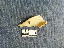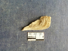 | Description / विवरण | Shell piece is pale white in color with ropy structure on it woing to natural formation. The piece has a pointed end and a flat cut opposite end, the shaff has a slight curvature. |