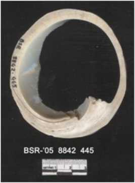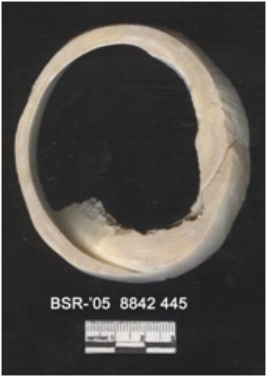 | Description / विवरण | The shell circlet has rough sides and unpolished surfaces. The shape is roughly oblong with various surface. |
