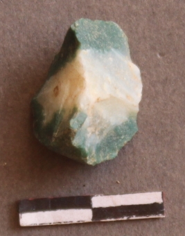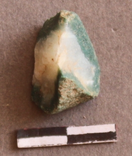 | Description / विवरण | It is quartz, with copper impurities. It is a nodule, no striking platform, and flake scar on the surface. |