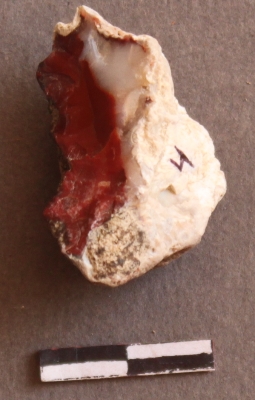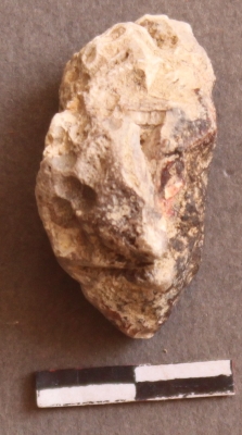 | Description / विवरण | It is a Jasper nodule. The surface is covered with cortex. Prominent flake scars on it. The cortex is patinated with calcium impurities. |