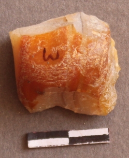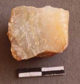 | Description / विवरण | It is a Chalcedony nodule. Flake scars on the surface. The surface is patinated with ferrous impurities. |