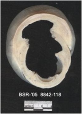 | Description / विवरण | The shell circlet is rough unpolished. The circlet is whitish in color with remnants of columella. |