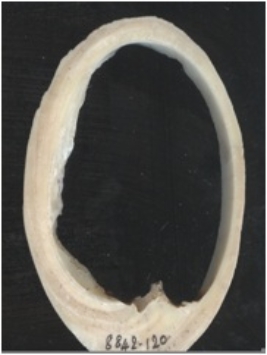 | Description / विवरण | The shell circlet is rough unpolished. The circlet is whitish in color with remnants of columella. |