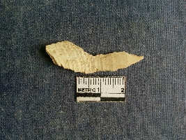 | Description / विवरण | Shell piece is pale white in color with ropy structure on it woing to natural formation. The piece has a pointed end and a flat cut opposite end, the shaff has a slight curvature. |