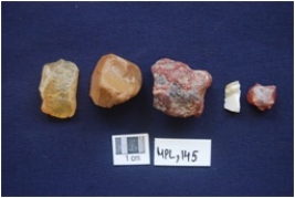 | Description / विवरण | Byproduct of tool manufacturing Banded Agate - two Chalcedony - two Chert - one |