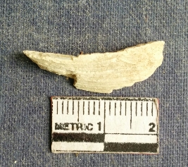 | Description / विवरण | Shell piece is pale white in color with ropy structure on it woing to natural formation. The piece has a pointed end and a flat cut opposite end, the shaff has a slight curvature. |