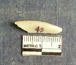 | Description / विवरण | Shell piece is pale white in color with ropy structure on it woing to natural formation. The piece has a pointed end and a flat cut opposite end, the shaff has a slight curvature. |
