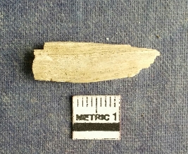 | Description / विवरण | Shell piece is pale white in color with ropy structure on it woing to natural formation. The piece has a pointed end and a flat cut opposite end, the shaff has a slight curvature. |