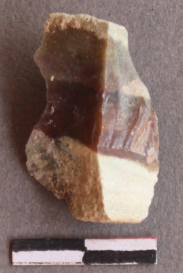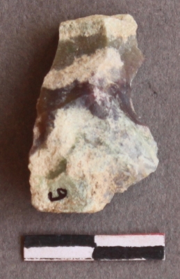 | Description / विवरण | It is a Jasper fragment. Elongated in shape. Prominent flake ridges on the fragment. |