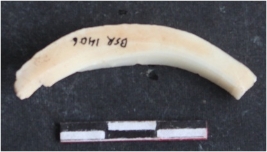 | Description / विवरण | A fragment of shell circlet which is square in section and with striation. |