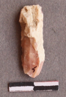 | Description / विवरण | It is a pinkish quartz fragment. Elongated in shape. Cortex on one end of the surface. |
