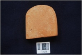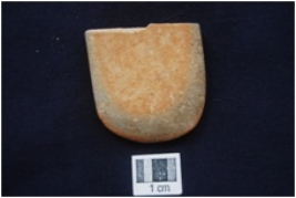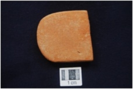 | Description / विवरण | Fragment of potsherd, worked along at one edge, edge is very smooth & sharp, surface is treated with red wash and smooth. |
