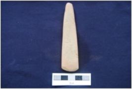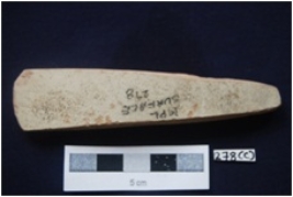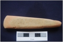 | Description / विवरण | Fragment of potsherd, worked along at one edge, edge is very sharp, surface treated with buff slip. |