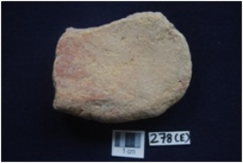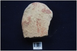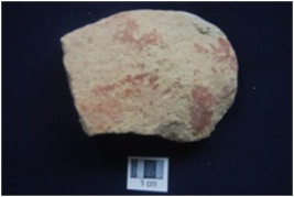| Description / विवरण | Fragment of pottery scraper, made on broken potshert, One end is broken and other edge sharp and thin, It has encrustration on both the surface, surface treated with red slip. |