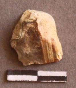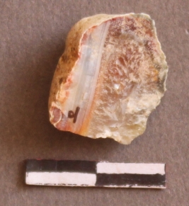 | Description / विवरण | It is a banded agate. Cortex on the other side of the fragment. flake scars on the surface. |