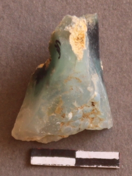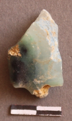 | Description / विवरण | It is a Quartz fragment. cortex on tone point of the fragment. internally patinated with copper impurities. |