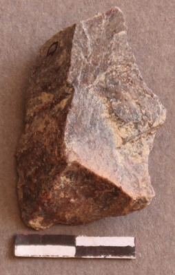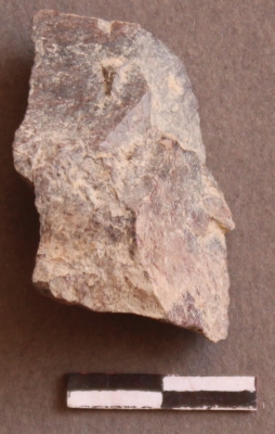 | Description / विवरण | it is a Jasper fragment. With sharp edges and pointed ends. Flake scars on the surface. |
