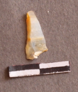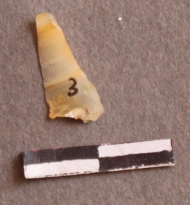 | Description / विवरण | This is lithic debitage of Chalcedony, with cut edges. Bulb of percussion on the ventral side of the flake. |