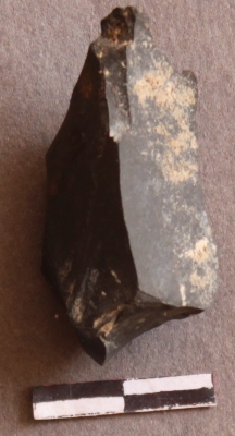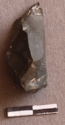 | Description / विवरण | This is lithic debitage of chert stone, with cut edges. Black chert, with cut ridges. |