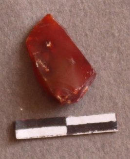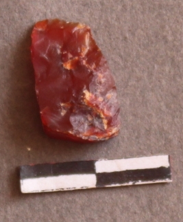 | Description / विवरण | It is carnelian lithic debitage, flake ridges on the surface heat treatment on it. Ripples on the surface due to heavy percussion. |