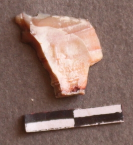 | Description / विवरण | It is agate lithic debitage, flake ridges on the surface. Striking platform with bulb on the ventral side. |