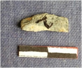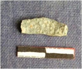 | Description / विवरण | The schist piece is oblong with sharp edges and angular ends. |