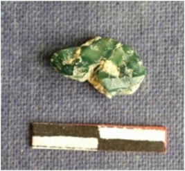 | Description / विवरण | Jasper piece with a median flaked ridge with sharp edges. |