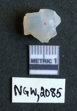 | Description / विवरण | It is a Chalcedony flake. It has striking platform with bulb on the ventral side. |