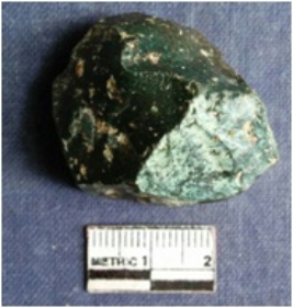 | Description / विवरण | Jasper chunk with numerous flake scars and sharp flaked edges. |