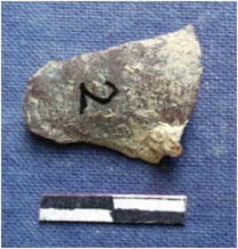 | Description / विवरण | Chert flake with an angular edge and sharp cut edges a result of flaking. |