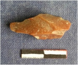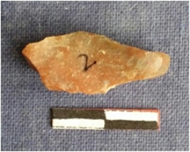 | Description / विवरण | The chert flake has negative flake scars and oblong pointed shape. |