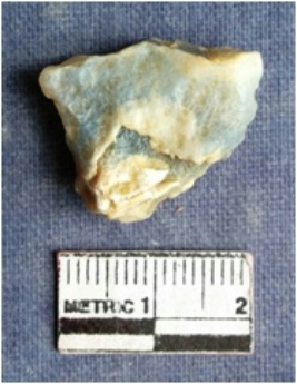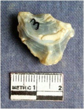 | Description / विवरण | The agate piece has flake scars and a prominent negative bulb of percussion. |