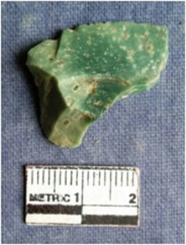 | Description / विवरण | The chalcedony core resembles a flanted core variety. The surface has oblong negative flake scars and has acquired a rough cylindrical shape. |