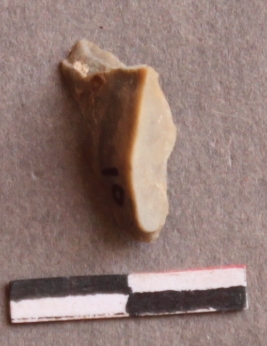 | Description / विवरण | It is a chert flake. Flake scars with ripples on the surface. Sharp edges with pointed ends. |