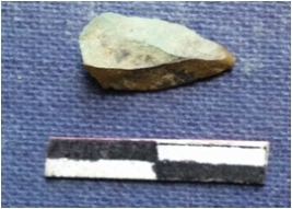| Description / विवरण | The chert piece is slightly elongated with a tapering end and a flat surface with flake scars. The piece has sharp edges as a result of flaking. |