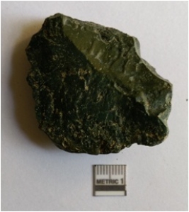 | Description / विवरण | The jasper has a median flaked ridges and surfacial flaked scars. The bottom of the flake has a part of cortex, which is a result of deposition and wear. |