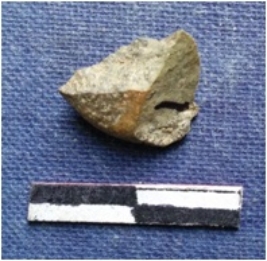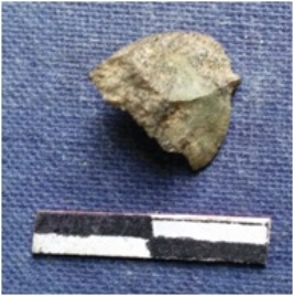 | Description / विवरण | The chert piece is smalll roughly rectangular with rounded edges and a pointed end. |