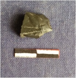 | Description / विवरण | The jasper piece is roughly squarish with a bulb of percussion and angular cut sides. |