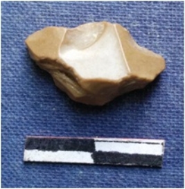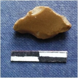 | Description / विवरण | The chert piece has two tapering ends as a result of flaking and has a sharp edge. |