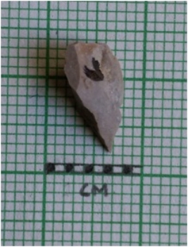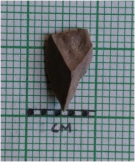 | Description / विवरण | The small flake is a part of manufacturing waste produced as a result of lithic knapping. The piece has sharp pointed ends and flake scars. |