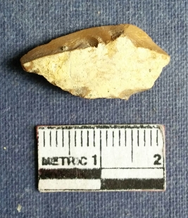 | Description / विवरण | It s a chert fragment having positive bulb of percussion on the ventral side. Flake scars visible on the surface. |