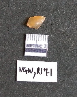 | Description / विवरण | It is an Agate fragment. With cortex on one side of the surface, striking platform on the proximal end. Flake ridges on the surface. |