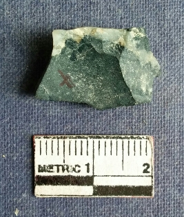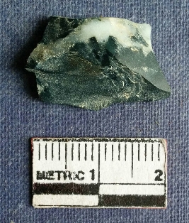 | Description / विवरण | It s a green jasper fragment, flake scars on the surface with calcium impurities embaded in the fragment. |