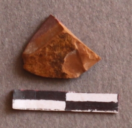 | Description / विवरण | It is a Chert fragment. Flake scars on the surface. Corroded on one side of the fragment. |