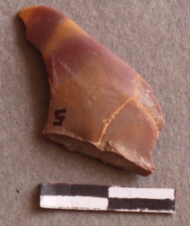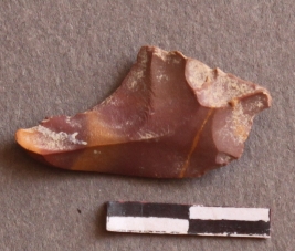 | Description / विवरण | It is a Chert fragment. With sharp edges and pointed ends. Bulb of percussion on the ventral side. |