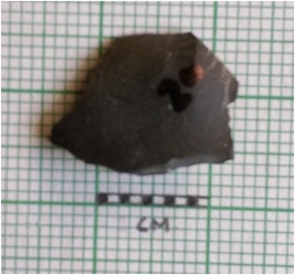 | Description / विवरण | The secondary flake has sharp edges and tapering edges as a result of flaking. The piece has angular ends and demonstrates fresh fracture and breakage due to deposition. |