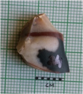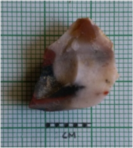 | Description / विवरण | The crypto - crystalline flake is a manufacturing waste of secondary flaking. The truncated flake scars on the surface, sharp pointed ends and cut edges are a result of flaking. |