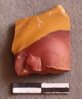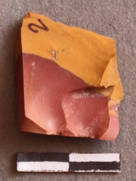 | Description / विवरण | It is a Chert fragment. Bulb of percussion on the ventral side. Flake ridges on the surface with ripples due to heavy percussion. |