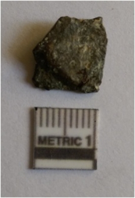 | Description / विवरण | The squarish flake is flat, with flake scars on the surface and a shallow bulb of percussion. |