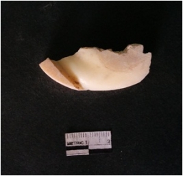 | Description / विवरण | This is a fragment of an unfinished shell circlet. It is an unfinished bangle fragment. It is white in color with polished inner surface and grounded outer surface. Rectangular in cross section. |